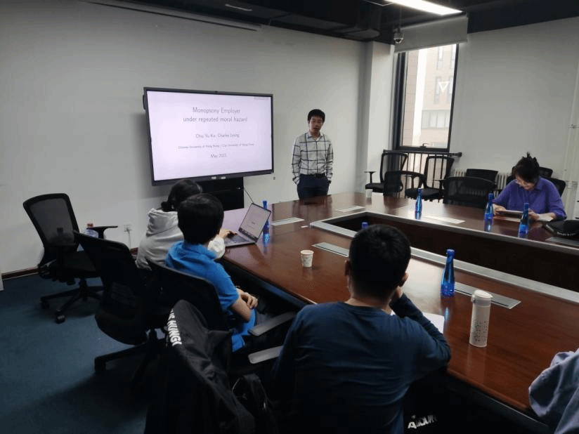 2023年5月19日14:00,香港中文大学院长聘副教授高超禹应beat365在线体育官网登录入口邀请,开展主题为“Monopsony Employer under Repeated Moral Hazard”的讲座,高超禹老师受到了老师和同学们的热烈欢迎!beat365在线体育官网登录入口黄乃静副教授主持讲座,尹振东教授,龚雅娴老师参加了讲座。