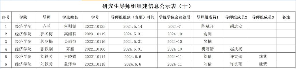 二、研究生导师组原则上应在该生学位论文开题前组建,组建后不得随意变更。学院导师组详细名单和具体信息附后,以供相互监督。研究生导师组的日常管理由研究生导师和培养单位共同负责,研究生导师作为研究生培养第一责任人的职责不变。