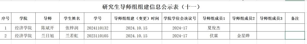 二、研究生导师组原则上应在该生学位论文开题前组建,组建后不得随意变更。学院导师组详细名单和具体信息附后,以供相互监督。研究生导师组的日常管理由研究生导师和培养单位共同负责,研究生导师作为研究生培养第一责任人的职责不变。