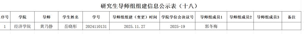 二、研究生导师组原则上应在该生学位论文开题前组建,组建后不得随意变更。学院导师组详细名单和具体信息附后,以供相互监督。研究生导师组的日常管理由研究生导师和培养单位共同负责,研究生导师作为研究生培养第一责任人的职责不变。