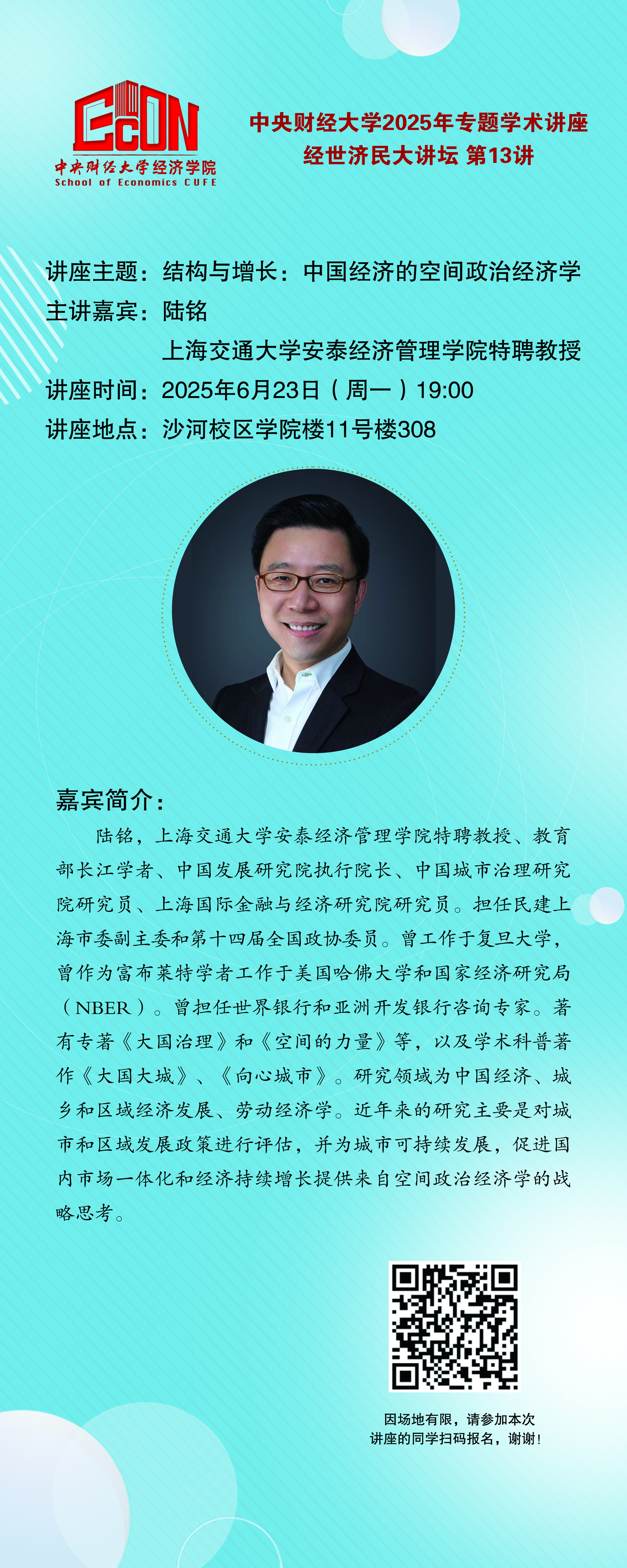 上一条:经济学家梦工场|学术生涯:机遇与挑战——由“学术活动项目组”功能型党支部承办 下一条:“联结中国与世界——中国经济真知行”系列活动 | 城市演化与空间经济:理解中国城市化的动力与挑战