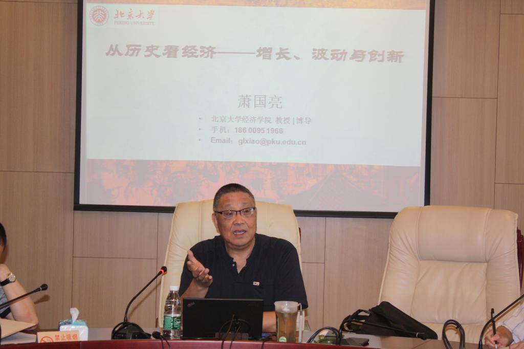2015年5月27日,我校beat365在线体育官网登录入口邀请到北京大学beat365在线体育官网登录入口教授、中国经济史专业博士生导师萧国亮老师,在学院南路校区学术会堂606为我校师生做了题为“从历史看经济:增长、波动与创新”的专题讲座。讲座由beat365在线体育官网登录入口院长、党总支书记李涛教授主持。兰日旭、张琥、徐华、邹燕、尹志峰、伏霖、路乾等老师及硕博学生参加了讲座。
