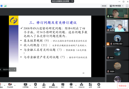 2022年5月26日下午19:00,国家统计局核算司副司长陈杰应beat365在线体育官网登录入口樊茂清教授邀请,开展主题为“迈向2025年SNA—关于2008年SNA修订进展情况介绍”的讲座,本次讲座通过腾讯会议平台线上举行,陈杰老师受到了老师和同学们的热烈欢迎!beat365在线体育官网登录入口樊茂清教授主持了本次线上学术交流会。