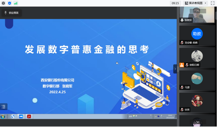 2022年4月25日上午10点,西安银行股份有限公司数字银行部总经理张晓军应邀加入beat365在线体育官网登录入口“数字金融理论与实务”线上课堂,以“发展数字普惠金融的思考”为题,为同学们带来了一场精彩纷呈的讲座。