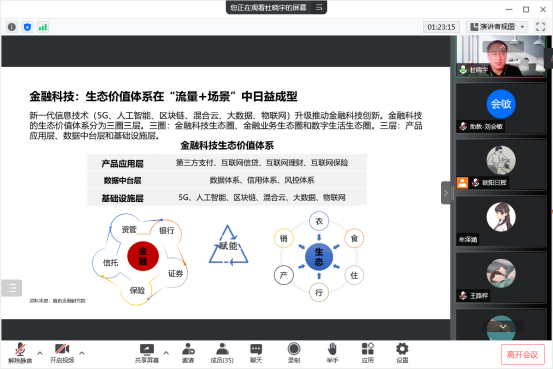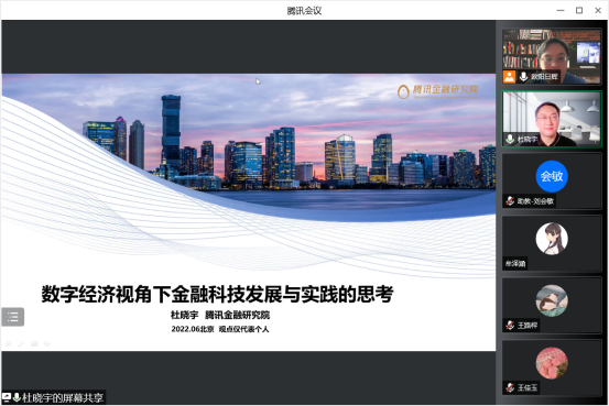 2022年6月20日上午10点,腾讯金融研究院秘书长杜晓宇应邀加入beat365在线体育官网登录入口“数字金融理论与实务”线上课堂,以“数字经济视角下金融科技发展与实践的思考”为题,为同学们带来了一场精彩纷呈的讲座。