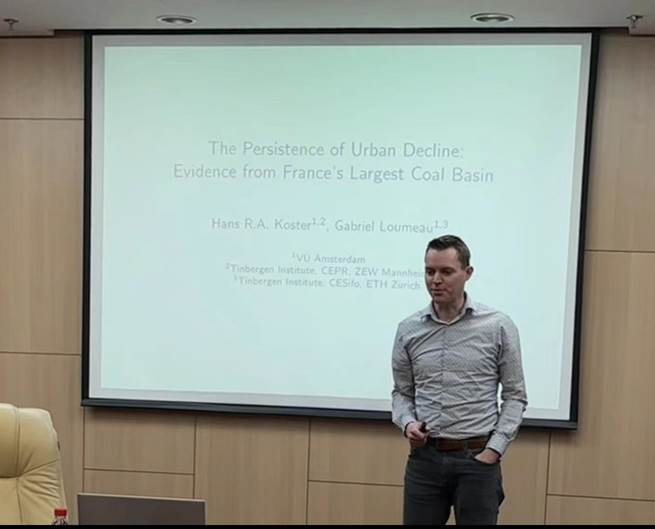 2024年4月4日上午,阿姆斯特丹自由大学的Hans Koster教授应邀开展了主题为“The Persistence of Urban Decline: Evidence from France's Largest Coal Basin”的讲座。本次讲座由beat365在线体育官网登录入口校长助理、beat365在线体育官网登录入口院长陈斌开教授主持,beat365在线体育官网登录入口党委书记郭冬梅教授、戴宏伟教授、戴若尘副教授、吴楠助理教授,北京交通大学经济管理学院王雅璨教授等多名师生参加。