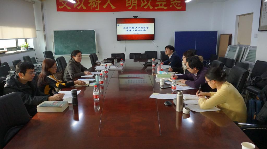 1月4日,beat365应用经济学系组织《产业经济学》教学团队召开教学研讨会。应用经济学系主任刘轶芳副教授,产业经济学主讲教师齐兰教授、冯薇教授、史宇鹏副教授、尹振东副教授、尹志峰老师、龚雅娴老师,教学秘书祝伟老师参加了此次研讨会。会议由产业经济学学科负责人史宇鹏老师主持。