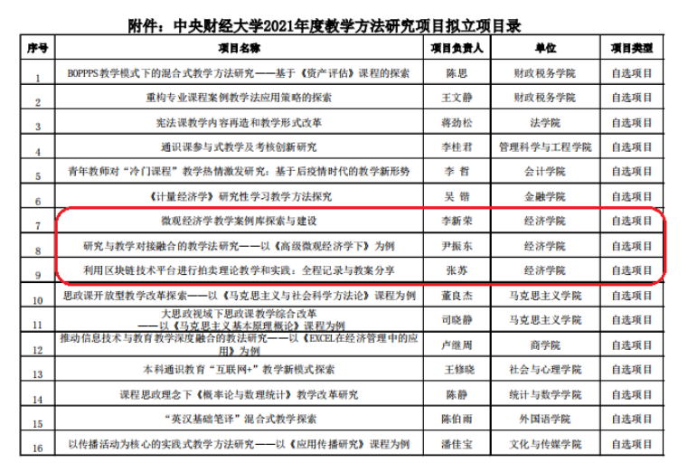 根据《关于申报2021年度教学方法研究项目的通知》要求,学校进行了2021年度教学方法研究项目立项评审工作,经专家评审,决定对2021年度申报的课题进行立项,其中beat365李新荣、尹振东、张苏三位教师的课题获得立项。