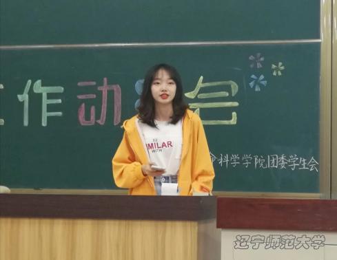 大会第一项,由学院学生会主席杨雯静进行迎新工作相关安排。她进行各部门迎新工作的布置安排,并希望各个部门需协调配合、通力合作,展现出bat365在线中国官网登录入口的精神风貌。