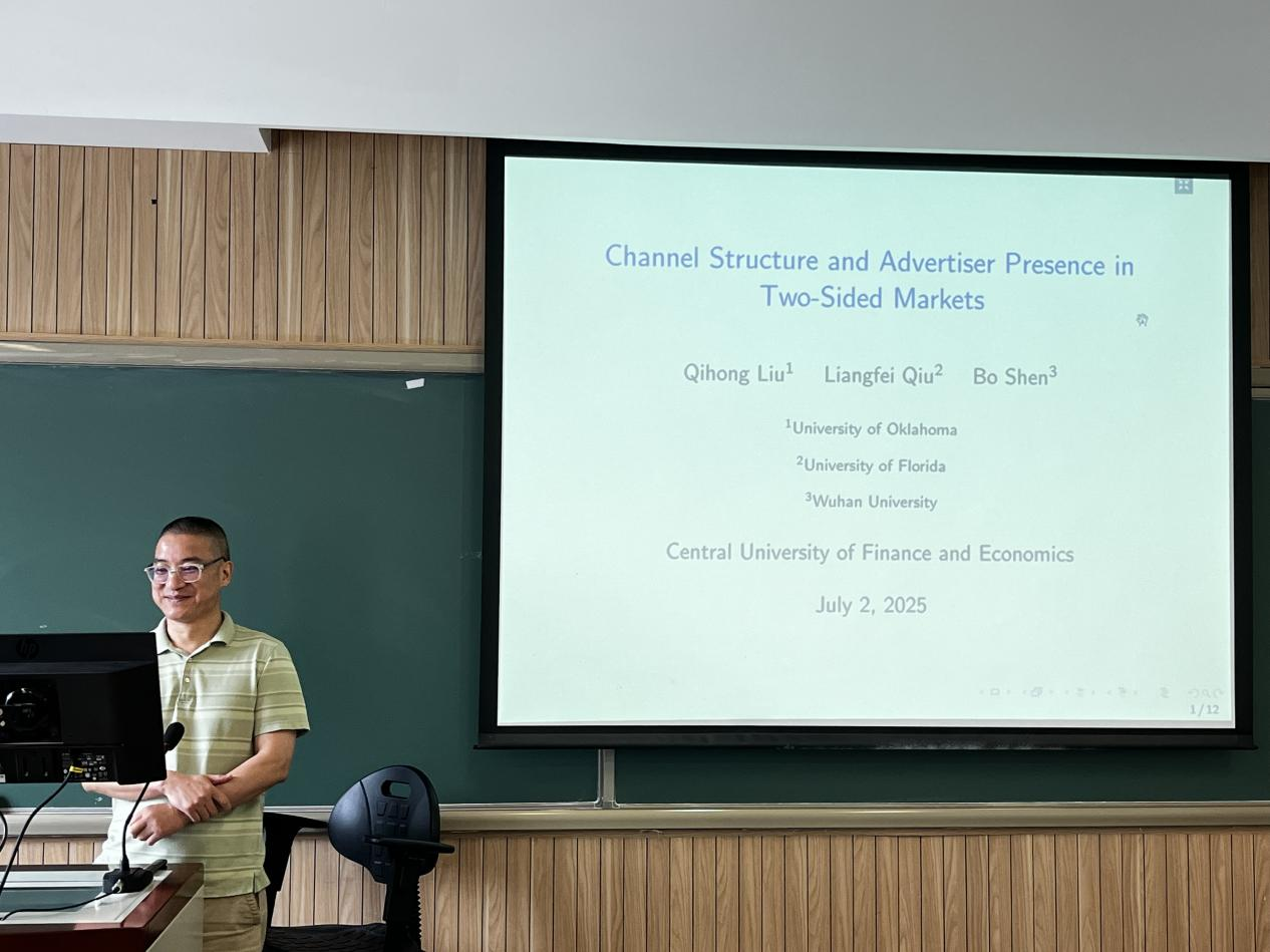 7月2日下午,刘其宏教授在学院南路校区主教楼702会议室为我校师生带来了题为“双边市场中的渠道结构与广告商存在:战略互依与市场结果”的学术讲座。刘其宏教授是平台与双边市场、产业组织领域的国际知名学者,在《经济学与统计学评论》、《管理科学》、《营销科学》等国际顶级期刊上发表论文40余篇,并担任《经济学与管理战略杂志》共同主编等多本权威期刊的编辑职务。讲座由beat365在线体育官网登录入口黄乃静教授主持,现场吸引了众多师生参与。