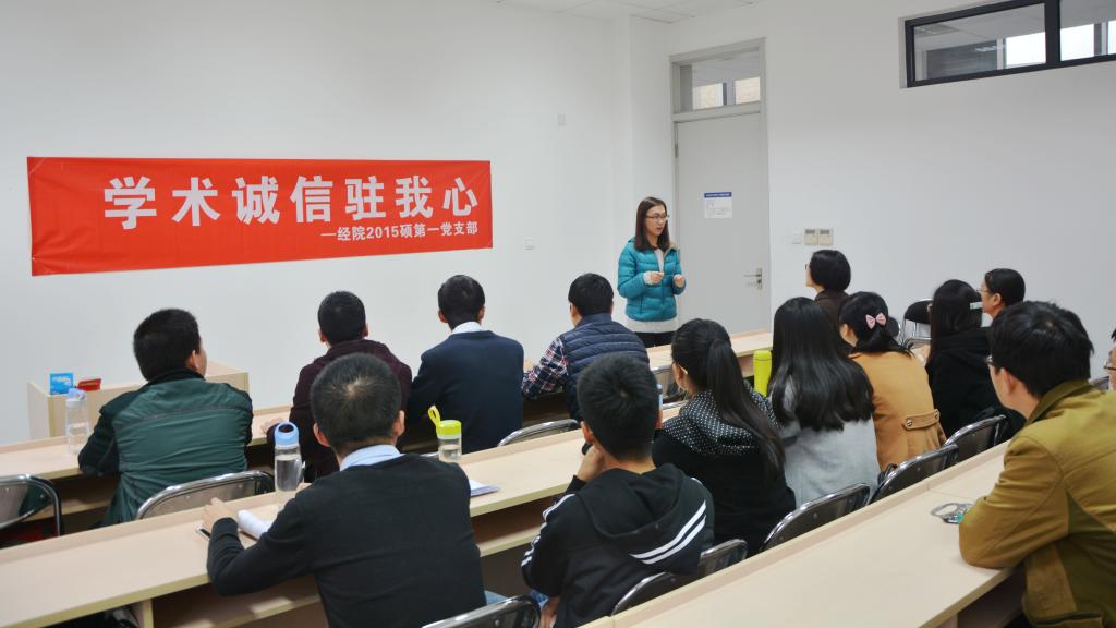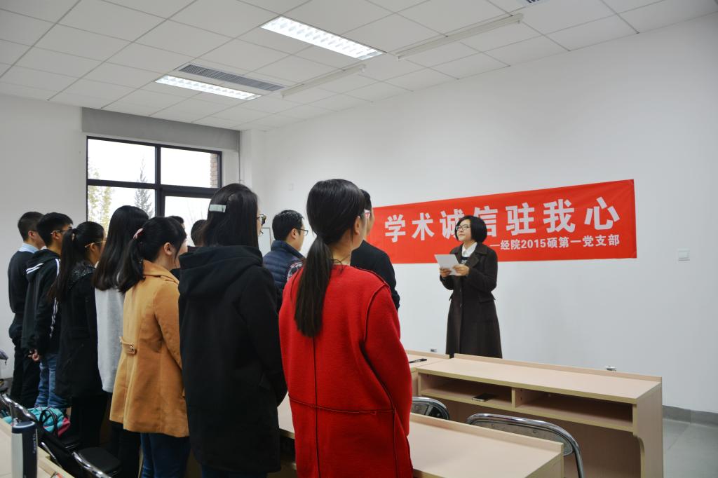 为铭记践行社会主义核心价值观—诚信,端正学术之风,beat365在线体育官网登录入口2015硕第一党支部开展了“学术诚信驻我心主题教育活动”。活动在beat365在线体育官网登录入口1号楼进行,beat365在线体育官网登录入口的任老师为同学们做了学术诚信的讲座,任老师用生动的例子为我们讲述了诚信的价值内涵,剖析了学术诚信应遵守的原则,活动的参与者进行积极的发言,讨论对学术诚信的认知,最后集体进行了学术诚信宣誓,并且在横幅上签名留念,活动取得了良好的效果,学术诚信驻进每位同学之心,人人都争当诚信的代言人。