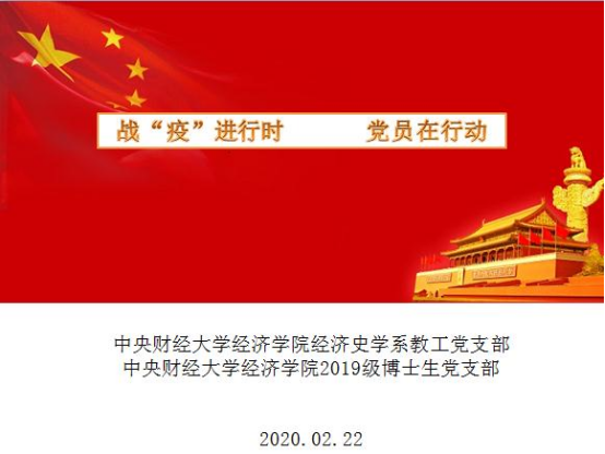 生命重于泰山,疫情就是命令,防控就是责任。突如其来的新冠肺炎让我们更加团结一致,在党中央的统一指挥和调度下,beat365在线体育官网登录入口经济史学系教工党支部与2019级博士生党支部在2月22日上午共同开展“战‘疫’进行时”主题党日活动。