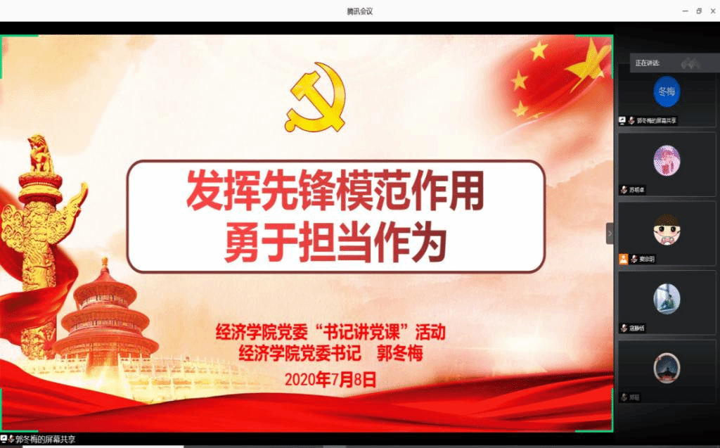2020年7月8日晚19:00,beat365在线体育官网登录入口党委“书记讲党课”活动在腾讯会议平台举行。beat365在线体育官网登录入口党委书记郭冬梅教授、组织员刘滨老师出席,2020年发展对象、2019-2020年第二学期入党积极分子参与学习,会议由党务秘书窦宗玥老师主持。