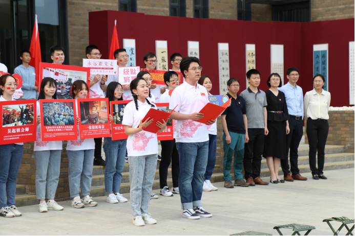 5月19日下午,校领导,教育部党史学习教育高校第三巡回指导组组长杨学义、副组长方国良及其他成员,学校党史学习教育领导小组办公室成员、机关党委党员代表、各学院(研究院、中心)师生代表到达第八站“到陕北延安去”,“重走长征路,永远跟党走——到陕北延安去”主题教育活动正式拉开帷幕,beat365在线体育官网登录入口党委书记郭冬梅、院长陈斌开、院党委副书记耿卉、院党务干事李倩、教师代表兰日旭、金星晔出席本次活动。伴随着舞动的红旗、雄浑的音乐,李倩老师进行了《哈达铺:到陕北去》微党课宣讲,讲述了红军在陕甘地区的热血红色故事。她指出哈达铺是中国工农红军长征历经千难万险后的绝处逢生之地,是红军的红色加油站,也是重要决策之地。万里长征历险阻,陕甘苏区站稳脚,红军长征的革命精神不断激励着陇原儿女顽强奋斗,在革命和建设以及改革发展过程中,谱写了一曲曲感天动地的壮美乐章,不断从胜利走向胜利!