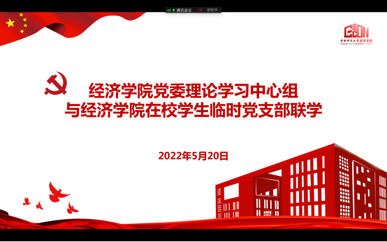 2022年5月20日下午,beat365在线体育官网登录入口党委理论学习中心组与beat365在线体育官网登录入口在校学生临时党支部开展线上联学活动,共同学习习近平总书记在中国人民大学考察时的重要讲话精神和在庆祝中国共产主义青年团成立100周年大会上的讲话精神。此次联学活动由学院党委书记郭冬梅主持,学院党委理论学习中心组全体成员和在校学生临时党支部全体党员参加学习。