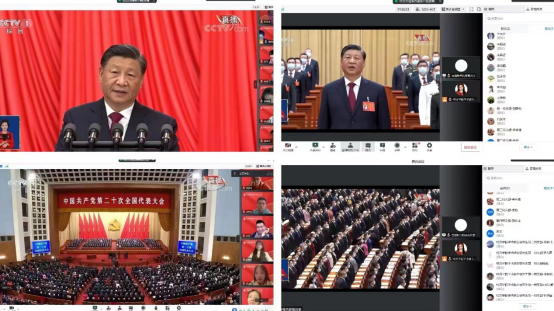 政治经济学系教工党支部第一时间组织支部全体党员收听收看党的二十大开幕会盛况,会后紧扣“实”字,带领支部党员坚持读原文悟原理,充分领会党的二十大报告精神实质。紧扣“新”字,带领支部党员深刻领会报告中的新思想、新判断、新目标、新举措,学出新方法、新措施,牢记党的中心任务,把握“三个务必”,弘扬伟大建党精神。紧扣“快”字,带领大家坚持学在前列,掀起学习宣传贯彻热潮,激励支部党员敢于担当、积极作为。