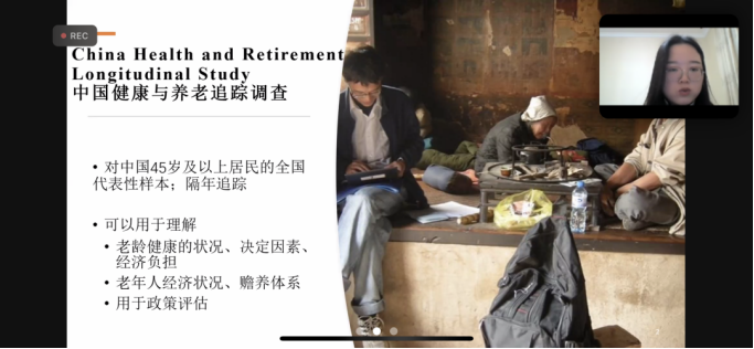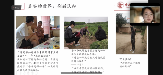 beat365在线体育官网登录入口2017级国民经济管理专业本科生、现就读于beat365在线体育官网登录入口创新发展学院的2021级硕士研究生袁惠桃,先后参加了2018年和2021年两次CHARLS调研项目,她同大家分享了自己作为访员时的一些故事,向大家讲述了撰写问卷、实地采访和后续研究的全过程。她认为,CHARLS项目的意义不仅是为学术研究收集一套高质量的微观数据,还在于它能够潜移默化地影响每一代访员,培养科研精神,凝聚科研力量。