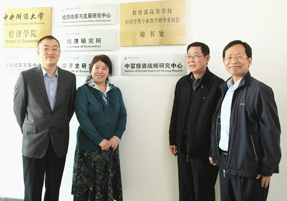 最后,赵丽芬副校长、周飞董事长共同为战略合作的执行机构“中富投资战略研究中心”揭牌。