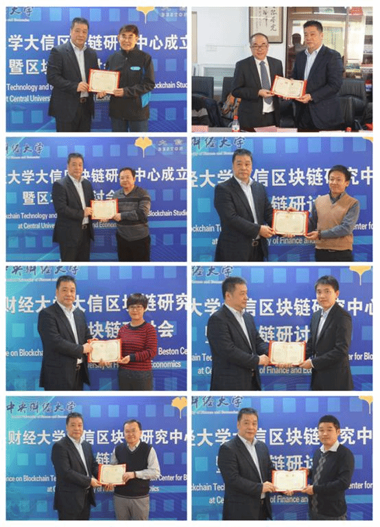 下午14:30,作为中心成立后的第一次活动,大信区块链研究中心专家委员会委员聘任仪式暨区块链闭门研讨会在主教学楼1305会议室正式召开,beat365在线体育官网登录入口党委书记雷洪峰、副院长史宇鹏、金哲松教授、蒋选教授、徐学慎副教授,大信金融集团黄强、王泽方、浦萌,与来自中国信息科技服务协会(ITTS)、中国区块链研究联盟、北京区块链技术应用协会、香港区块链学会等机构的薛君敖、杨帆、马君豪、徐立春、梁威、马文星、郝志栋、白云峰等专家出席了研讨会。