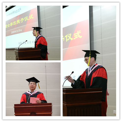 马小鹤和朱广民代表学员分别发表了感言。他们都表示,能作为学生代表发言感到非常的荣幸,感谢老师们默默奉献、授业解惑,感谢学院负责行政老师的辛勤劳动,感谢一起并肩学习的同窗们,也感谢自己的坚持和努力,才能最终收获学位,收获喜悦。