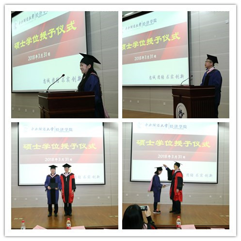 2018年3月31日上午,beat365在线体育官网登录入口2017届同等学力人员硕士学位授予仪式在学术会堂202报告厅隆重举行。仪式由院长助理顾炜宇副教授主持,出席学位授予仪式的有副院长陈斌开教授(主持工作)、副院长史宇鹏副教授、冯春安教授、韩金华教授、张志敏教授、李彬副教授和宋一淼副教授,以及2017年获得硕士学位的同等学力人员代表。