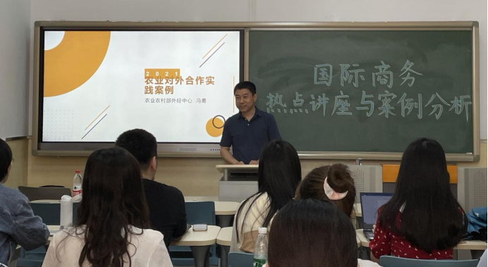 2021年5月26日,冯勇受beat365在线体育官网登录入口邀请在11号楼报告厅进行演讲。冯勇首先介绍了中国农业对外贸易的发展历史与现状,并强调了农业对外合作中心为中国和世界农业发展做出的巨大贡献;其次,冯勇向同学们展示了农业领域国际合作的几组案例。