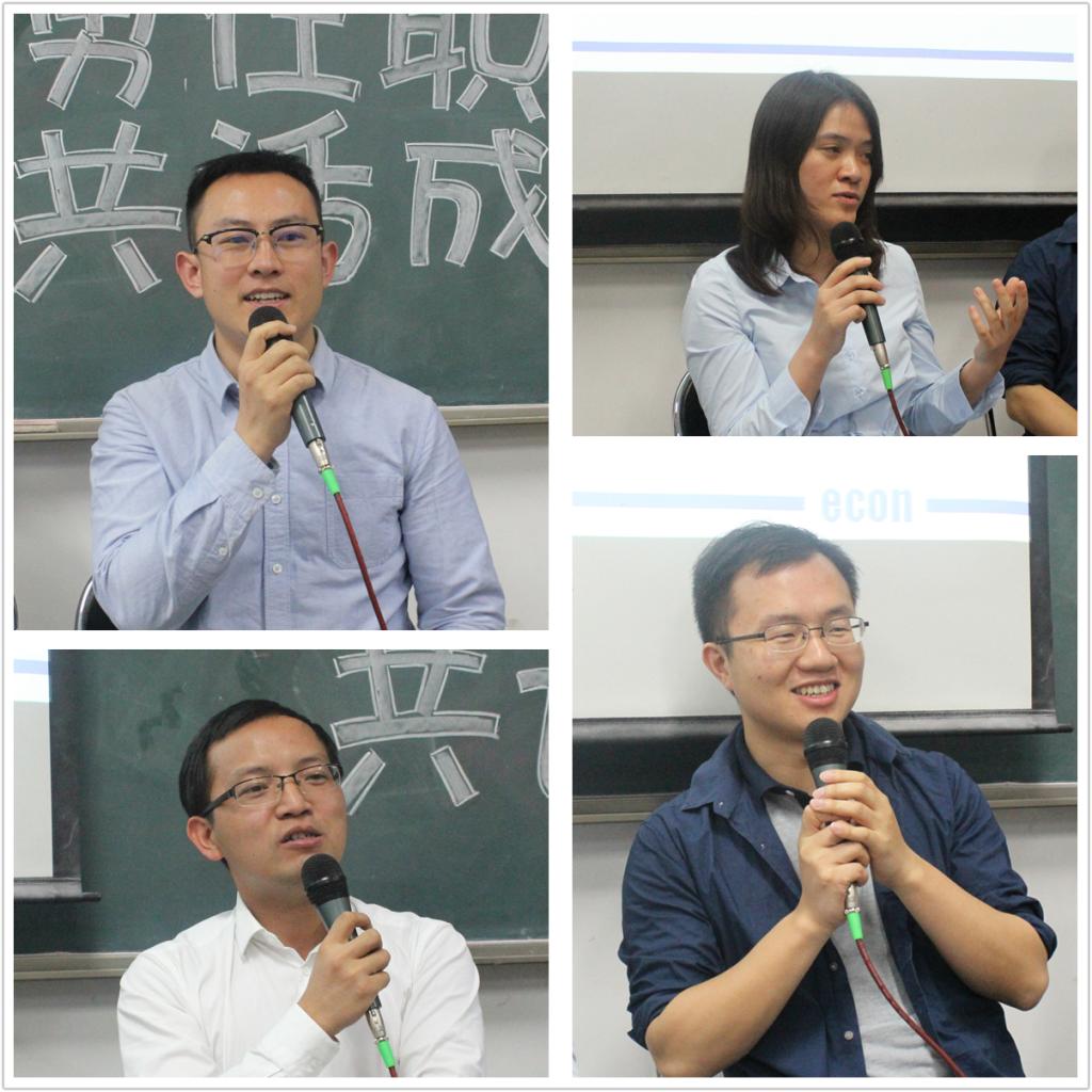 5月12日,beat365在线体育官网登录入口成长分享会之职业认知篇章在沙河校区406教室顺利举行。本次分享会在14级国民经济管理专业班班主任伏霖老师的努力推动下,邀请到就职于工商银行总行战略规划部熊圆、中国投资有限责任的陶阳、阿里研究院的梁慧芳以及清华科技园的隋剑锋四位来自不同领域的行业精英做客沙河,与beat365师生一起分享了他们作为“过来人”的工作经历与生活感悟。本次分享会由beat365在线体育官网登录入口2015级本科生、硕士生辅导员任晶老师主持。