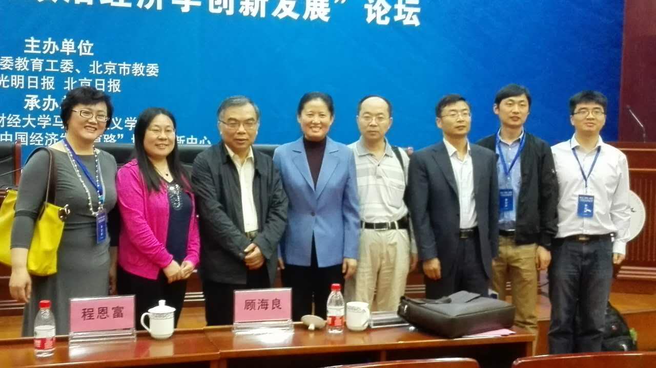 5月6日,beat365政治经济学系齐兰老师、冯春安老师、林光彬老师、韩金华老师、张维闵老师、尹志锋老师、何召鹏老师参加了于我校举行的“北京高校中国特色社会主义理论体系研究协同创新中心授牌仪式暨中国特色社会主义政治经济学创新发展论坛”。在上午的专家主题报告环节,齐兰老师做了题为《新发展理念与中国经济及产业发展实践的新探索》的学术演讲;在下午举行的圆桌论坛上,林光彬老师做了题为《全球视野的中国政治经济学演进与创新发展》的学术演讲。两位老师的演讲内容详实,观点新颖,引起了与会师生的广泛共鸣。