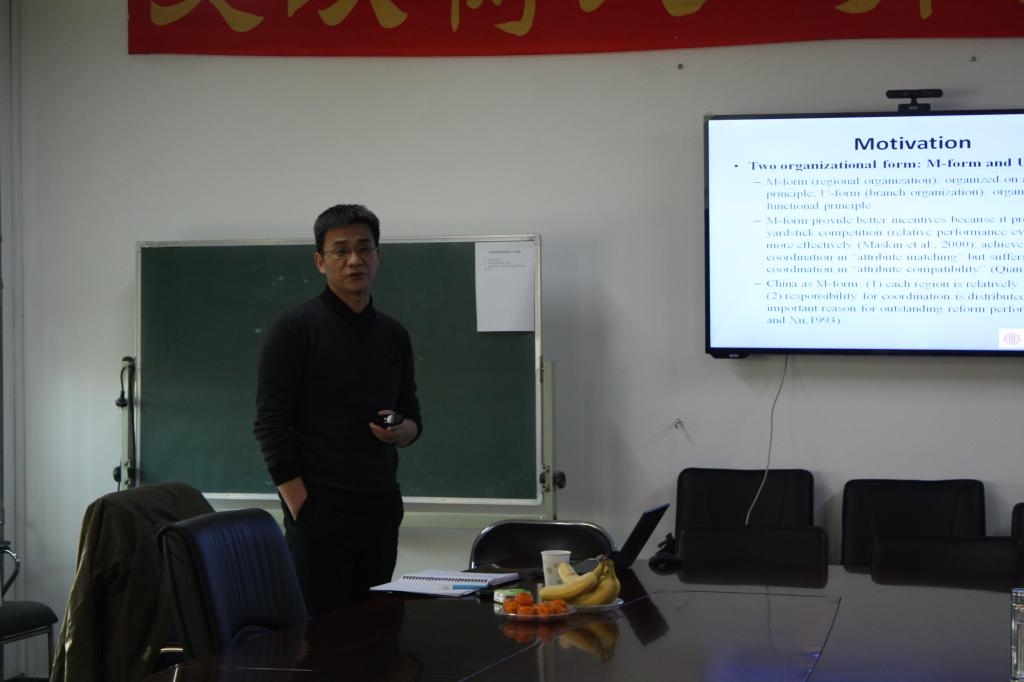 2014年12月10日,我校beat365在线体育官网登录入口邀请到中国人民大学财政金融学院院长助理、2010年教育部“新世纪优秀人才支持计划”入选人贾俊雪教授,为我校师生做了题为“Fiscaldecentralization and local economic growth in China”的专题讲座。讲座由beat365在线体育官网登录入口赵文哲老师主持,陈斌开、王海港、张川川等多位老师出席了讲座。