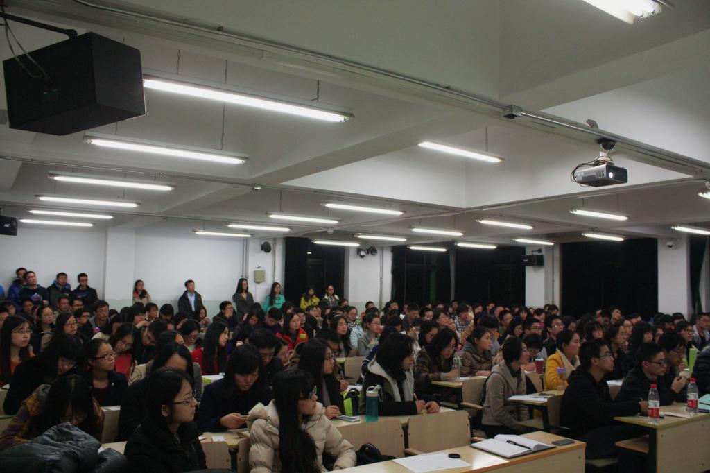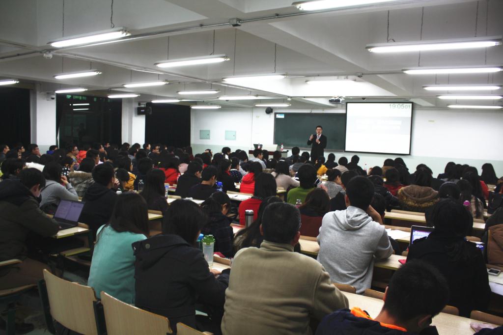 11月24日晚,beat365在线体育官网登录入口第二次就业沙龙:大学生就业指导系列讲座--2015招聘面试关键技巧培训在学院南路校区主教217成功召开,邀请到了资深面试官王炳森老师为我校学生带来面试方面的资深培训与经验分享。王老师从银行、国企的群体面试、结构化面试等方面入手,详细介绍了面试官情况、面试流程、面试礼仪、注意事项等方面的知识,直接受益学生超过200人。