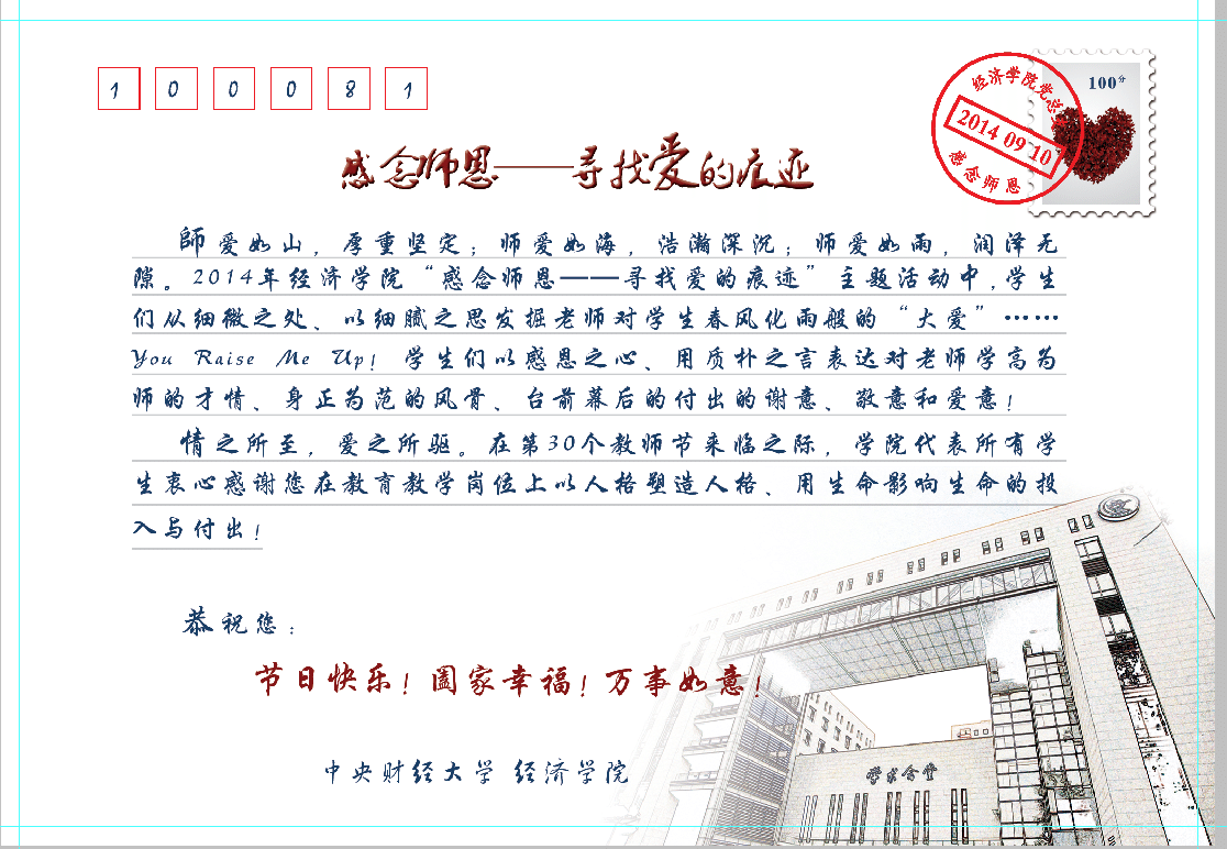 beat365在线体育官网登录入口党总支以爱的痕迹中学生写给老师的感恩话语为基础,为每位老师定制了一张专属的明信片,以质朴的语言,以真挚的情怀,携全院学子的感恩之情向每位教师致以崇高的敬意和谢意,也祝贺每一位教师身体康健,阖家幸福!