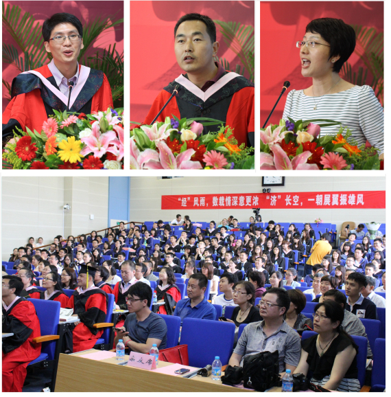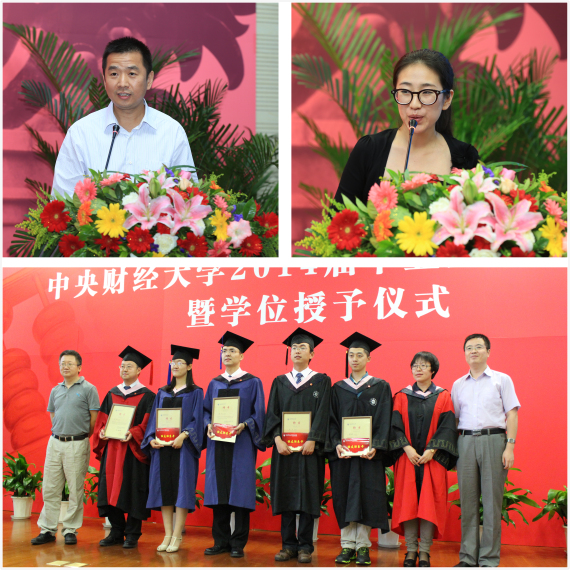 在雄壮的国歌声中,beat365在线体育官网登录入口2014届毕业生毕业典礼暨学位授予仪式正式开始。学院副院长李彬、陈斌开分别宣读了《关于2014届研究生毕业及授予学位的决定》《关于2014届本科生毕业及授予学位的决定》,2014年beat365在线体育官网登录入口共有48名本科生、73名硕士研究生、15名博士研究生如期完成学业、顺利获得学位。另有1名本科生在顺利完成本专业学习的同时还获得了第二学位。随后,党总支副书记刘滨宣读了学校《关于表彰2014届优秀毕业生的通知》《关于表彰2014届优秀毕业研究生的通知》,学院党总支书记、博士生导师李涛教授为优秀毕业生颁发了荣誉证书和奖品。