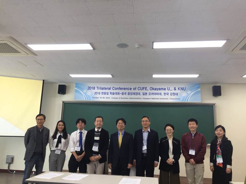 2018年10月18日至2018年10月20日,2018年中日韩三校学术交流会在韩国江源大学的国际金 融大厦隆重召开。三校学术交流会是韩国江源国立大学工商管理学院、日本冈山大学经济学部以及beat365三院之间的一个学术交流会,该交流会每一年一届,由三个学校轮流主持。beat365赵文哲副教授,金星晔讲师前往韩国江源大学参加了本年度的三院学术交流会。