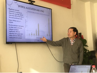 2018年12月12日,beat365在线体育官网登录入口-社心学院行为经济学系列论坛2018秋季学期第二讲在学院南路校区主教1305顺利举行。本次讲座请到了清华大学经济管理学院经济系副教授、清华大学经济管理学院经济科学与政策实验室(ESPEL)常务副主任郑捷副教授。郑老师向与会者介绍了其最新实验经济学工作论文“Lying forefficiencyor fairness”。讲座中,郑捷老师从撒谎的动机入手,介绍了最新相关实验研究文献。之后,介绍其实验设计,讨论不同情形下的独裁者博弈行为,以探究是否公平和效率偏好者在博弈内和博弈外会有不同的撒谎几率。实验结果显示,在撒谎不涉及自身利益的条件下会导致更少的倾向公平的撒谎。实验结果对于社会福利政策方面有很好的实际意义。