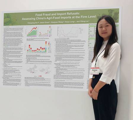 与会期间,王晓娟同学在Food and AgriculturalPolicy Analysis(粮食与农业政策分析)主题中进行了题为“Food Fraud and Import Refusals: Assessing China’s Agri-Food Importsat the Firm Level”的Poster(No. T030)展示。该论文为王晓娟同学在我校beat365在线体育官网登录入口刘轶芳教授指导下,与南京农业大学谢超平副教授、弗吉尼亚理工大学Jason Grant副教授以及我校统计与数学学院龙彦宇同学合作完成。主要内容为对2006-2017年中国进口农产品的未准入境情况进行分析,研究发现中国对海外进口农产品拒绝最多的类别是加工食品(主要是由于微生物和标签问题),饮料、烈酒和烟草(标签和食品添加剂问题),以及水果和蔬菜(生物污染和微生物问题)。而拒绝次数最多的前五大农产品进口地是台湾、美国、日本、法国和缅甸。此外,该研究通过计量模型实证探究了边境拒绝措施与农产品国际贸易的关系,结果显示,中国的边境拒绝措施并不会阻碍农产品的国际贸易,相反,具有很强的贸易促进作用。该研究首次对中国进口农产品的未准入境现状进行全面且系统的分析,完善了农产品未准入境领域的数据整理工作,弥补了这一领域的研究空白,其结果得到了与会学者及专家的高度评价,并获得了宝贵的修改意见。