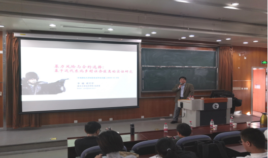 2019年12月11日,复旦大学经济学系李楠教授应beat365在线体育官网登录入口邀请,在beat365在线体育官网登录入口沙河校区3号楼222教室开展了主题为“暴力风险与合约选择——基于近代东北乡村社会匪患的考察”的讲座,本次讲座由beat365在线体育官网登录入口兰日旭教授主持,我校多名教师、博士和硕士研究生参加了讲座。