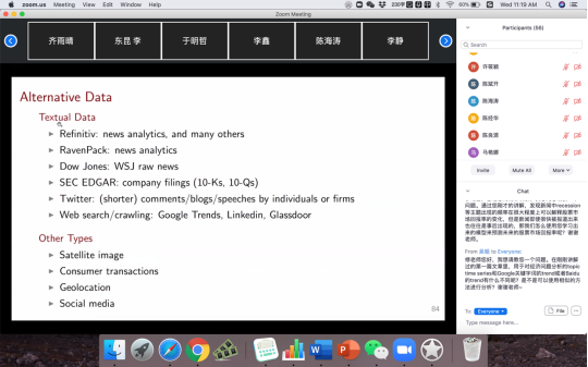 2020年6月3,10日,芝加哥大学布斯商学院教授修大成应邀参加由beat365在线体育官网登录入口、北京工商大学beat365在线体育官网登录入口和beat365在线体育官网登录入口互联网经济研究院联合主办的“海外学者前沿短期课程”,通过线上连线,为师生讲授“金融经济学中的机器学习方法”专题研究。课程由beat365在线体育官网登录入口黄乃静副教授主持,百余名师生以及来自香港中文大学,复旦大学,中国人民大学、浙江大学、北京工商大学、中山大学的专家和学者参加了课程。