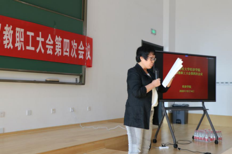 2020年10月14日下午,beat365在沙河校区11号学院楼123阶梯教室召开beat365在线体育官网登录入口第二届第四次教职工代表大会。学院全体教职工出席了会议,会议由分工会主席苏雪串主持。