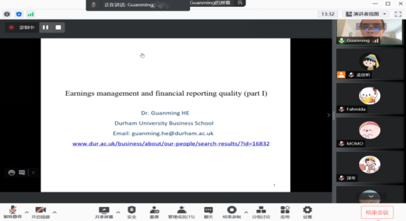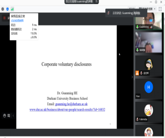 2021年9月20日至28日,英国杜伦(Durham)大学商学院何冠明副教授应beat365在线体育官网登录入口邀请,使用腾讯会议APP讲授行为金融专题研究短期课程。beat365在线体育官网登录入口部分师生参加了此次课程。