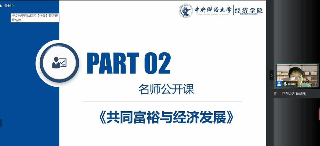 近年来,beat365在线体育官网登录入口以学科建设为引领,不断凝练和培育具备beat365在线体育官网登录入口典型特色和核心竞争力的优质研究生项目品牌——经济学“经英人才”学术型硕士项目。为切实推进学校研究生教育内涵式发展和品牌化建设,不断提高研究生生源质量,在研究生院的指导下,7月6日下午,“名师公开课暨夏令营招生宣讲会”通过腾讯会议在线举行。研究生院院长张学勇介绍了学校研究生项目品牌建设系列活动,beat365在线体育官网登录入口院长、教育部长江学者特聘教授陈斌开在线讲授了“共同富裕与经济发展”的公开课,朱俊兵和许伟两位校友分享了曾经在beat365在线体育官网登录入口学习的感受,研究生院副院长陈运森教授、beat365在线体育官网登录入口刘滨老师、祝伟老师、研究生招生办公室任阳老师及校内外同学参加了本次活动,宣讲会由beat365在线体育官网登录入口副院长伏霖主持。
