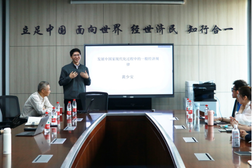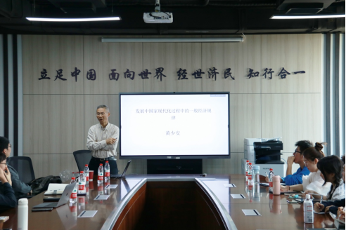 2023年10月11日14:00,beat365在线体育官网登录入口特聘教授、山东大学经济研究院院长黄少安教授为我校师生主讲《发展中国家现代化过程中的一般经济规律》讲座。beat365在线体育官网登录入口校长助理、beat365在线体育官网登录入口院长陈斌开教授主持讲座,beat365在线体育官网登录入口党委书记郭冬梅教授、beat365在线体育官网登录入口副院长何召鹏副教授、beat365在线体育官网登录入口国民经济系主任黄乃静副教授和beat365在线体育官网登录入口数十名师生参加。