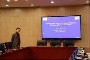 本次会议邀请了六位主讲人,分别就其研究领域进行报告。首先,来自韩国江源大学的Hyun-Hoon Lee教授分析了当前国际形势下中韩经济发展趋于日本经济发展的风险;接着,日本冈山大学Jiyoung Kim副教授介绍了使用对偶法估计多因子聚集函数及其在一般均衡模型中的应用;beat365吴楠老师针对当前现状,对环境法规的加价分散和部分行业覆盖进行了深入研究;韩国江源大学的学者Hansol Lee探讨了近三年新冠肺炎疫情对韩国企业国际化的影响及股权集中度的作用;日本冈山大学Ruiting Wang副教授研究了小微企业动态集聚下的预算管理与减税政策有效性;最后,beat365夏俊杰副教授对中国的改革和经济特区进行了全面解读。会场气氛活跃,与会学者就共同关心的问题展开了热烈讨论。