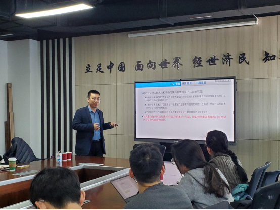 2023年12月21日星期四,中国社会科学院大学倪红福教授应beat365在线体育官网登录入口邀请,于学院11号楼308会议室开展主题为“中国产业链风险敞口的测度、结构及国际比较——基于生产链长度视角”的讲座。本次讲座由黄乃静老师主持,参会的还有齐兰、徐翔和赵扶扬老师以及beat365在线体育官网登录入口本硕博同学。倪红福教授受到参会老师、同学们的热烈欢迎。
