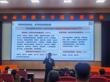 招生宣讲现场,何召鹏老师详细介绍了我校的发展历史、学科优势、人才培养体系及近年来我校在吉林省招生录取的有关情况,并结合自身经历为同学们讲述了“经世济民的经济学”专题课程。周战强老师从经济学的角度出发,通过博弈游戏引导同学们深入思考经济学原理,积极踊跃提问,激发了同学们对经济学的浓厚兴趣。