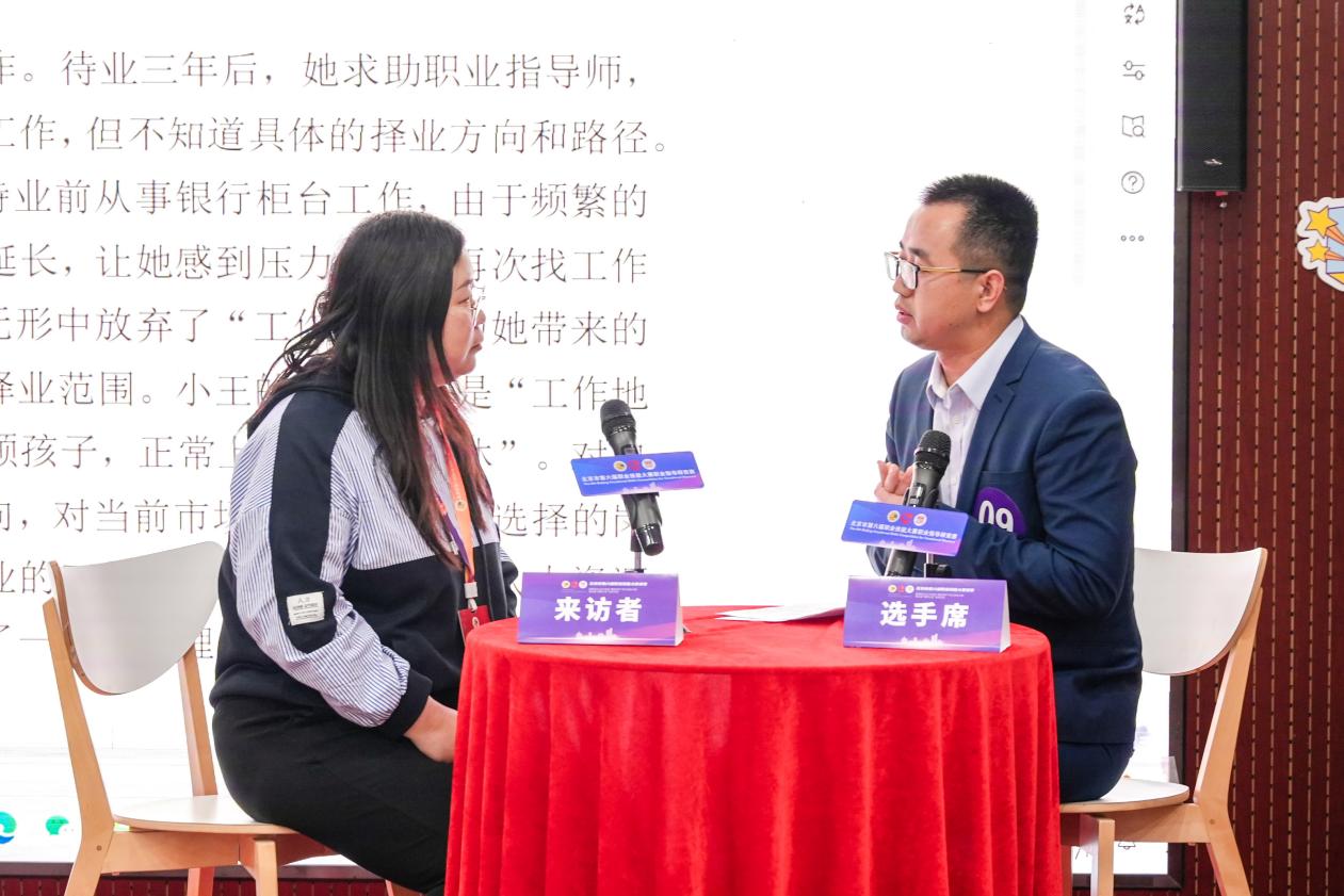 在情景模拟实操中,梁延东老师迅速与来访者在有限的时间内建立信任关系,根据丰富的工作经验,准确把握其需求和心理状态,通过出色的沟通技巧和专业的指导能力,为来访者提供有针对性的职业指导建议。最终获得北京市职业技能大赛“职业指导师赛道”第二名,充分展现了beat365辅导员精湛的业务能力和昂扬的精神风貌。