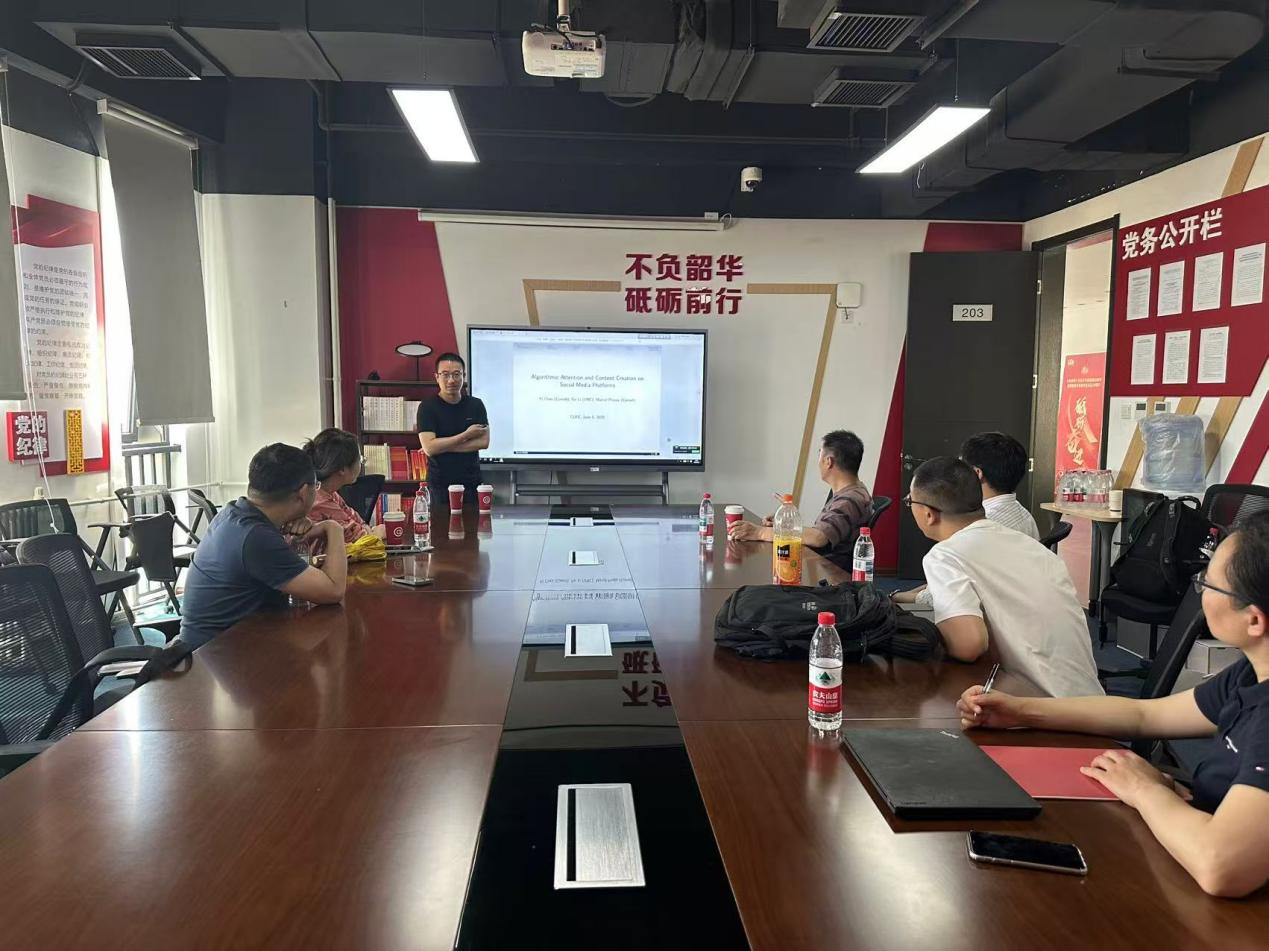6月6日(周三)下午,beat365在线体育官网登录入口2025年专题学术讲座在沙河校区学院11号楼203会议室举行。此次讲座邀请到美国康奈尔大学商学院经济系助理教授陈轶博士,分享其题为“Algorithmic Attention and Content Creation on Social Media Platforms”(社交媒体平台上的算法注意力与内容创作)的最新研究。beat365在线体育官网登录入口龚雅娴副教授主持讲座,beat365在线体育官网登录入口多位老师和十余名学生参加了此次讲座。