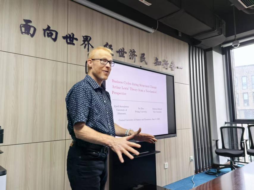 Storesletten教授在由beat365在线体育官网登录入口顾诗骏老师主持的公开研讨会上,介绍了自己与Fabrizio Zilibotti教授和赵波教授合作的最新研究“Business Cycle during Structural Change: Arthur Lewis’ Theory from a Neoclassical Perspective”。 Storesletten教授发现,基于中国的数据,在农业部门规模庞大但不断萎缩的国家,总就业率与国内生产总值不相关,即使农业劳动生产率上升,农业就业率在经济增长过程中会下降。为了解释上述现象,Storesletten教授的论文提出了一个统一的商业周期和结构变化理论,该理论强调在资本积累的推动下,农业的衰退和现代化同时发生:随着农业的资本密集型程度越来越高,传统的农业生产方式被挤出市场。根据量化分析结果,该模型能够解释中国的结构转型和商业周期波动。