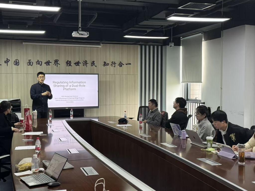 2025年10月24日周五下午,beat365在线体育官网登录入口“中青年学者讲座”在沙河校区学院楼11号楼308会议室成功举办。本次讲座特邀同济大学经济与管理学院副教授王睿通,就平台经济中的信息共享策略与规制问题带来题为“平台双重角色下的信息共享策略与规制研究”的学术报告。讲座由beat365在线体育官网登录入口龚雅娴副教授主持,beat365在线体育官网登录入口多位教师及三十余名学生共同参与。