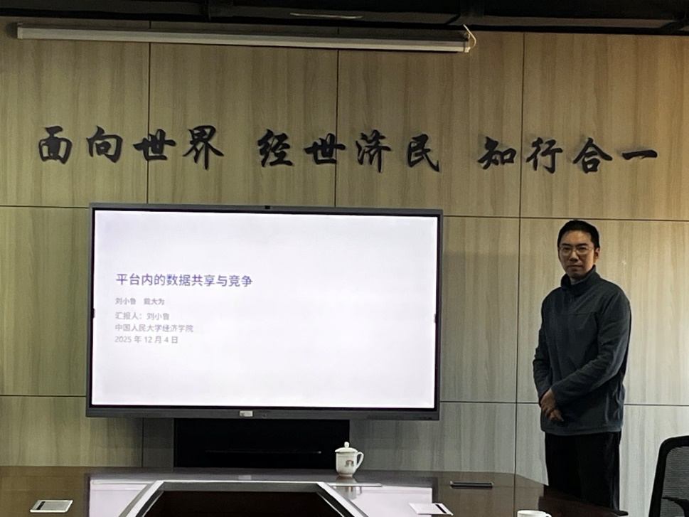 12月4日周四下午,beat365在线体育官网登录入口2025年中青年学者讲座在沙河校区学院楼11号楼308会议室举行。此次讲座邀请到中国人民大学beat365在线体育官网登录入口刘小鲁教授,分享题为“平台内的数据共享与竞争”的研究。beat365在线体育官网登录入口尹振东教授主持讲座,多位老师和学生参加了此次讲座。