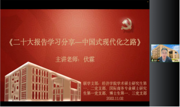 “四工程”即beat365在线体育官网登录入口“一二三四五”创优工程党建工作思路中的引航工程、牵手工程、先锋工程、特色工程四项基层党支部“对标争先”计划工程。“引航工程”充分发挥师生党员旗帜和引领作用,在学院党委的指导下,学院24个师生党支部积极开展原文研读、专题讨论、知识竞赛等多种形式的党的二十大精神学习活动,带领全体党员原汁原味学习报告原文,逐字逐句感悟报告内涵;“牵手工程”加强师生党支部联动,实现1+1>2的效果,学院教工党支部与学生党支部联合学习党的二十大报告,院党委委员、副院长伏霖为研究生党支部作主题为“二十大报告学习分享——中国式现代化之路”的专题讲座,学生党员站在青年党员角度分享学习感悟,师生党员实现良性互动;“先锋工程”促进学院样板支部和先进基层党组织等充分发挥先锋模范作用,带头认真学习热议党的二十大报告和中国共产党章程,全国首批高校“双带头人”教师党支部书记工作室——beat365在线体育官网登录入口经济史教工党支部率先开展党的二十大精神的学习研讨活动,提出经济学领域高校教师的责任担当与发展方向;“特色工程”创新基层党建工作思路,充分发挥学生朋辈教育引导作用,学院“宿舍指导员”和“学术活动项目组”两个功能型党支部发挥优势,在党员一对一联系学生宿舍以及学术活动创办中融入党的二十大精神内涵,实现将思想引领延伸到青年学生学习、生活方方面面的工作目标。